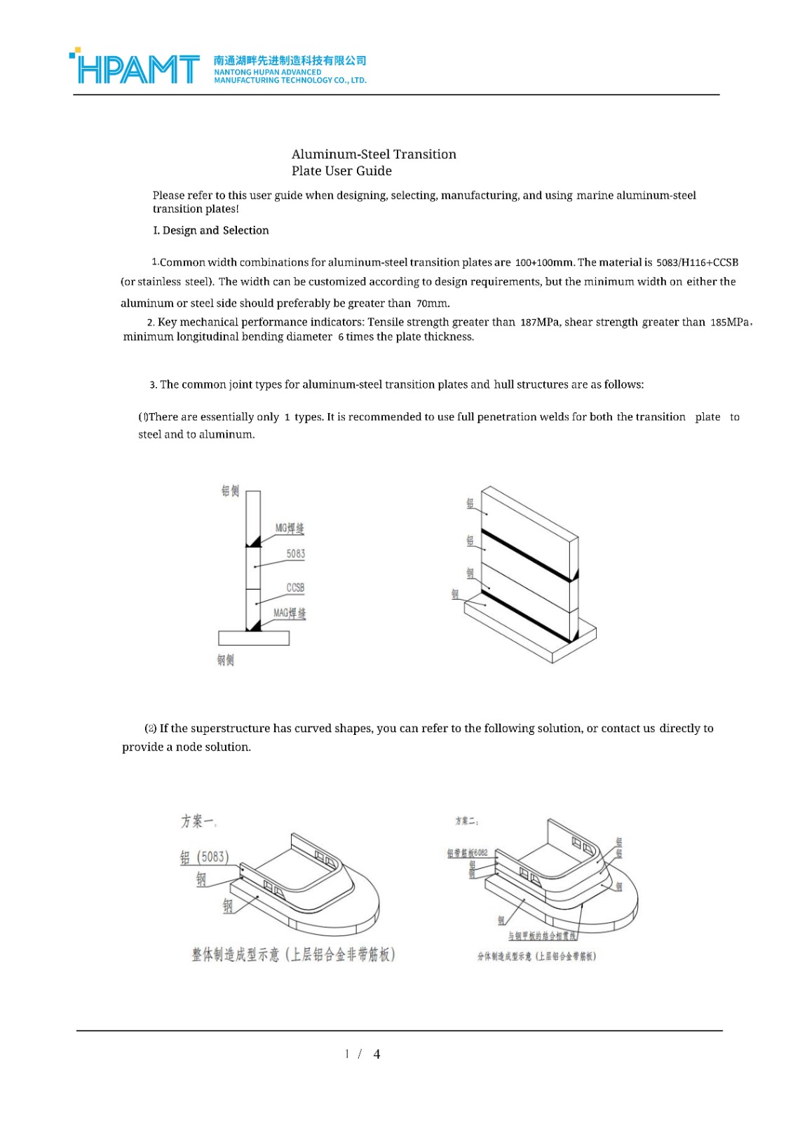 Aluminum-steel transition plate User Guide